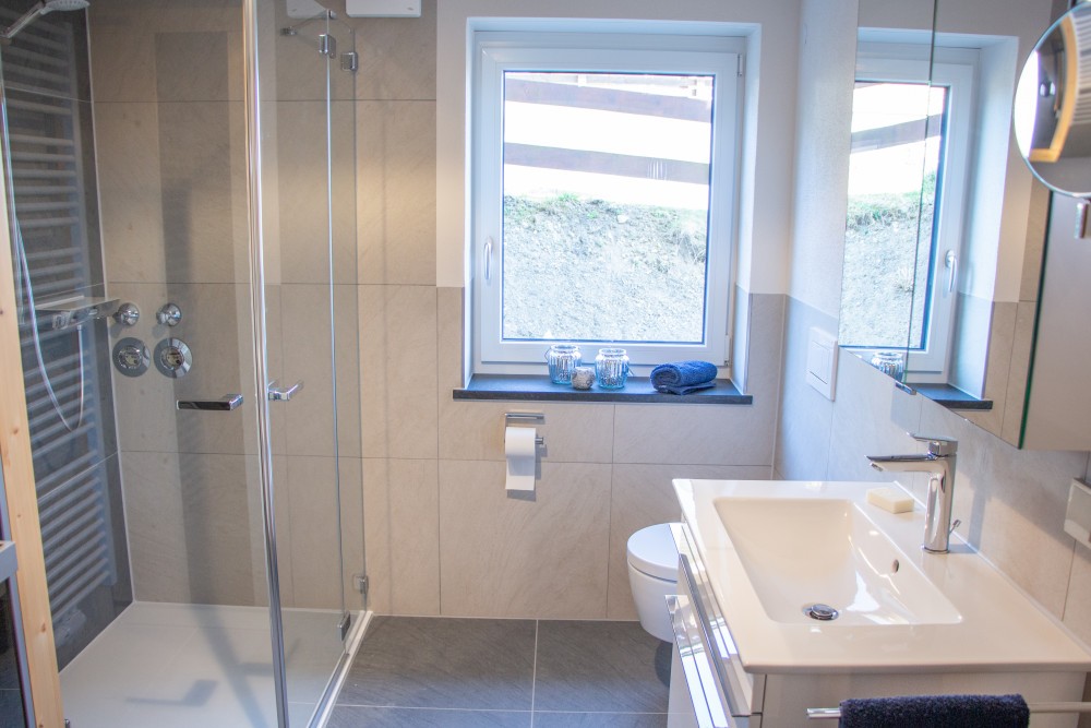 - Einbau von komfortablen Lüftungsgeräten mit Feuchtesensor und Wärmerückgewinnung in den Bädern