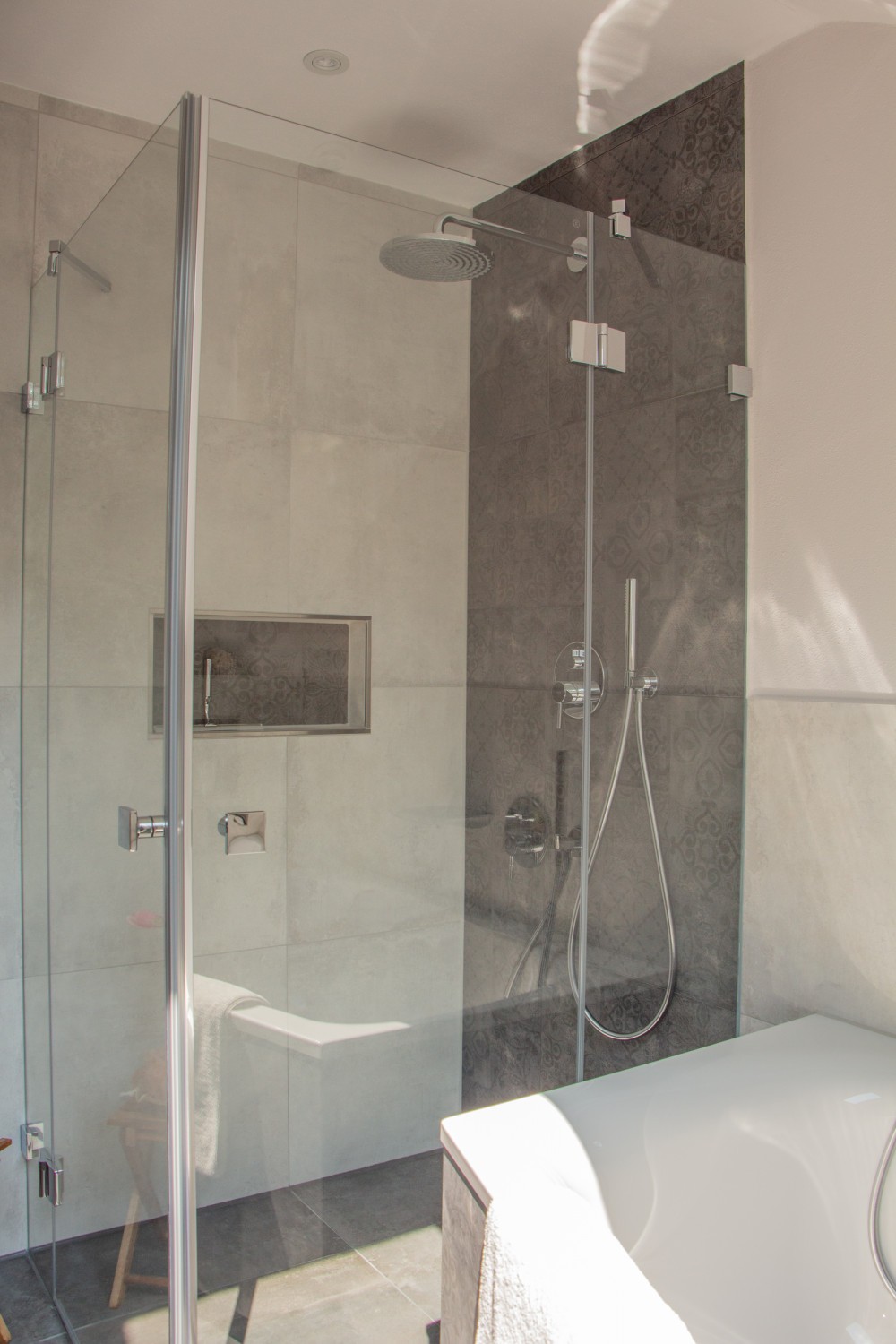 - Barrierefreie, bodenebene Dusche mit Eckeinstieg