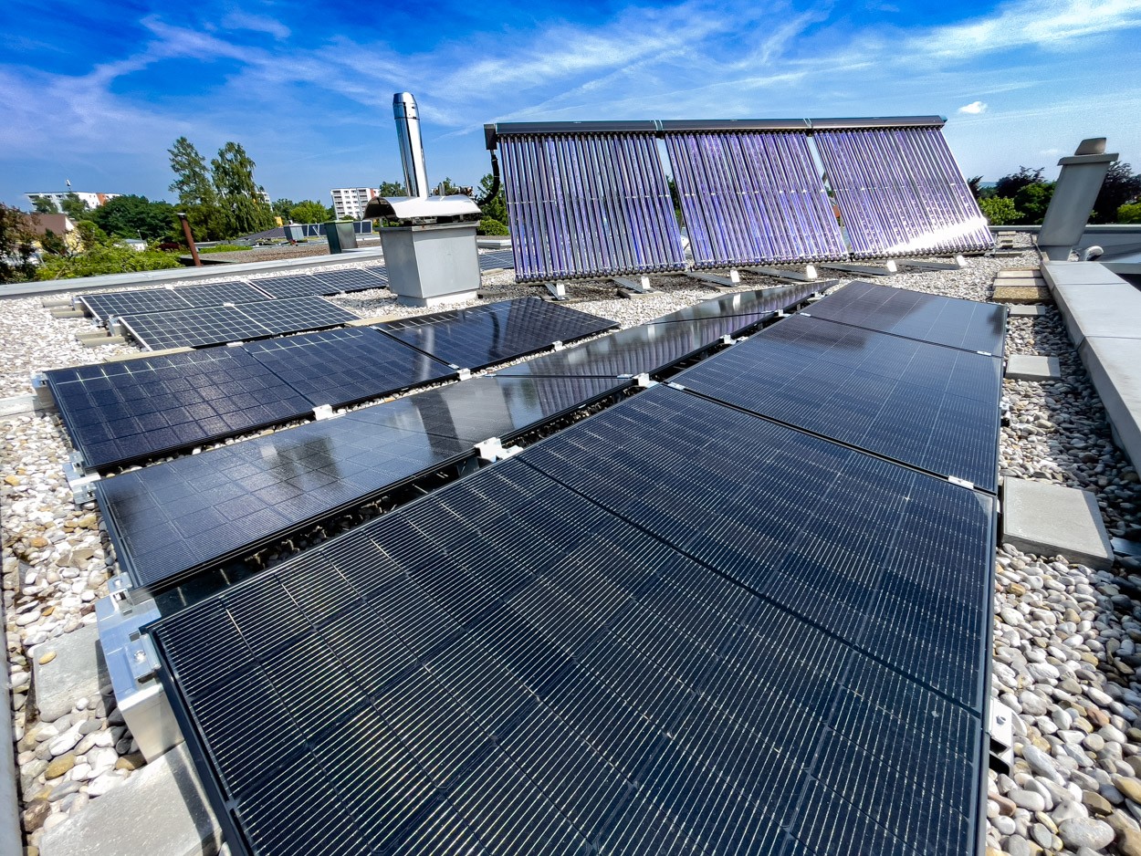 - Erweiterung der bestehenden Photovoltaik- und Solarthermieanlage um weitere 6,72 kWp PV-Fläche auf Flachdachsystem