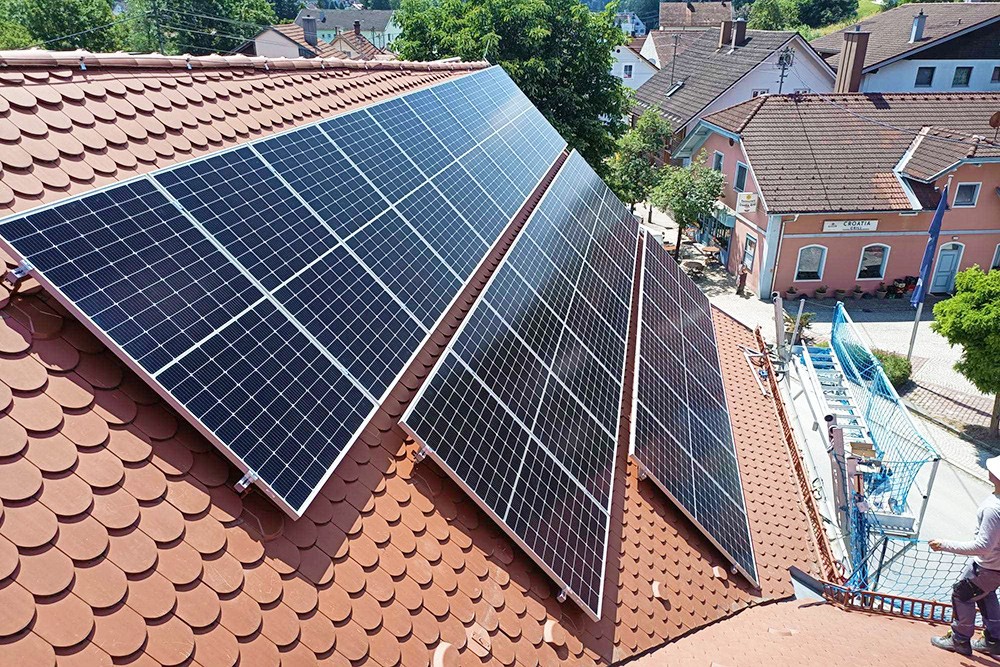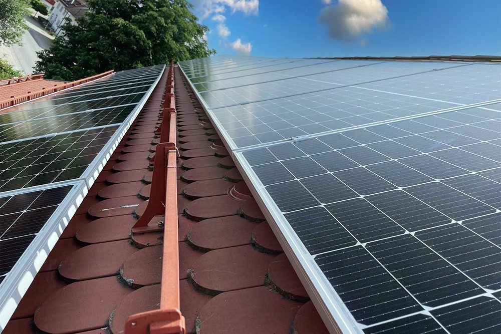 Aufgrund der unterschiedlichen Himmelsrichtungen der Dachflächen, kann die mehrflächige PV-Anlage optimal "grüne Energie" erzeugen und zur nachhaltigen Einsparung der Gewerbe- und Gebäudestromkosten beitragen.