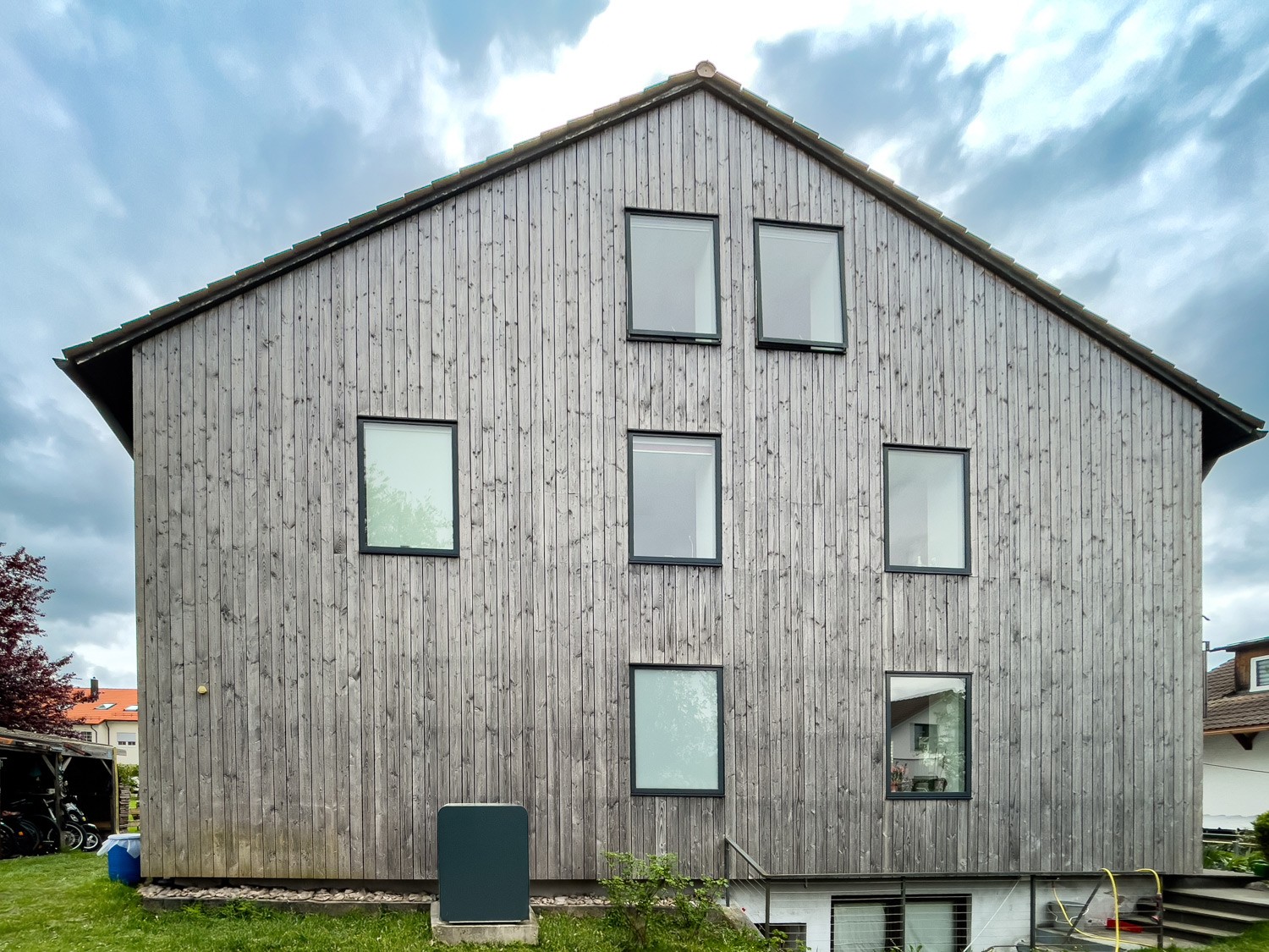 Die Doppelhaushälfte aus den Ende 70er Jahre wurde von den Eigentümern bereits vor ca. 20 Jahren komplett umgebaut und ein KfW 50 Standard erreicht. Es entstanden daraus zwei separate Wohneinheiten für eine Mehrgenerationennutzung. Das Haus wurde im Zuge dessen u.a. mit einer zeitgemäßen Dämmung, energieeffizienten Fenstern und einer Holzfassade versehen. Da zu diesem Zeitpunkt eine noch recht frische Gastherme verbaut war, wurde heizungstechnisch noch nicht Hand angelegt. 2025 war es an der Zeit, die Heizung zu sanieren. Für die Eigentümer war klar, dass nur ein regeneratives Heizungssystem in Frage kommt. Außerdem sollte eine PV-Anlage integriert werden, um die Wärmepumpe bei Bedarf mit selbsterzeugtem Strom zu nutzen oder überschüssigen Strom für den Haushaltbedarf zu verwenden oder in einer Batterie für die spätere Nutzung zu speichern.