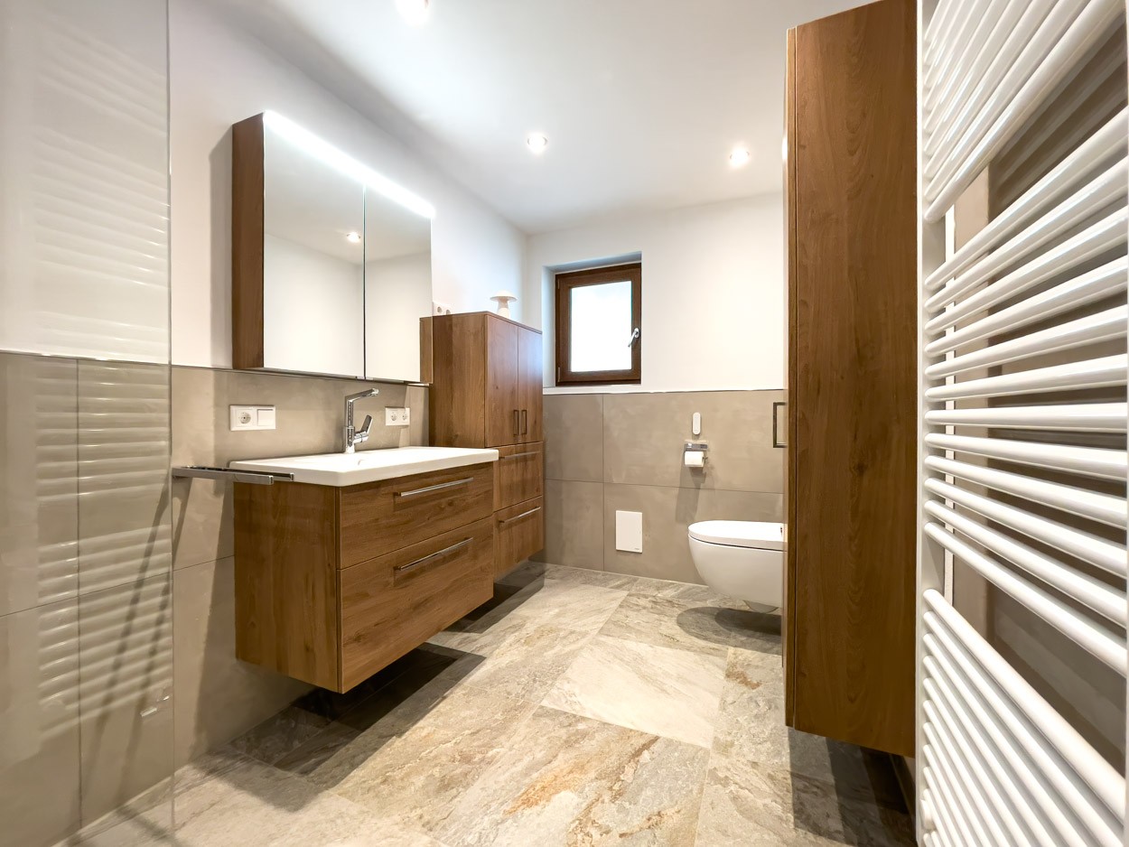 viel Helligkeit durch die neue Beleuchtung mit Deckeneinbaustrahler in LED und Spiegelschrankbeleuchtung